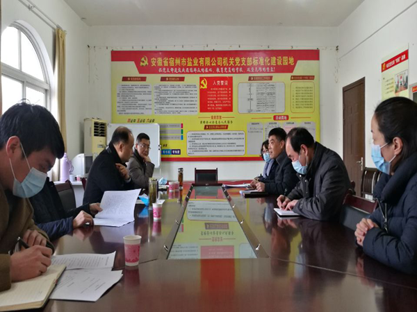 宿州市鹽業(yè)公司總支書記、經理陳勇匯報了宿州鹽業(yè)基本情況和各項工作。祖鈞公對宿州市鹽業(yè)改革后取得的各項成績予以了高度肯定。他指出,宿州鹽業(yè)要繼續(xù)做好2021年食鹽供應工作,做好食鹽儲備的同時抓好疫情防護。他還要求經信局要協(xié)調相關部門,加大市場監(jiān)管力度,齊抓共管,共同維護好鹽業(yè)市場,讓市民吃上放心食鹽。