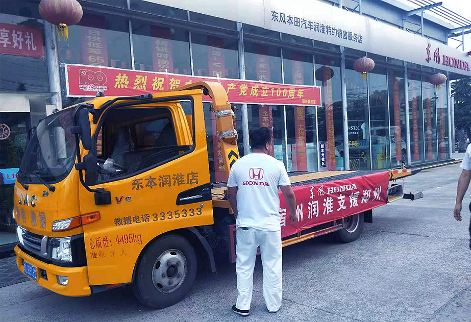 鄭州水災(zāi)牽動著每一名國人的心,在得知鄭州市眾多車輛遇水拋錨堵塞路面、阻礙交通,急需暢通道路救援后,宿州潤淮東本4S店在弘德公司支持下第一時間與災(zāi)區(qū)方面取得聯(lián)系,在經(jīng)過高效的對接工作后,立即組織了一支由四臺施救車輛組成的搶險救援隊,安排公司車間主任李楠帶隊,星夜奔赴災(zāi)區(qū),火速馳援!救援車隊當(dāng)晚抵達鄭州災(zāi)區(qū)后,并未進行修整,旋即投入到緊張的救援工作中去。災(zāi)區(qū)險情千變?nèi)f化,作業(yè)環(huán)境尤為艱苦,作為宿州潤淮團隊的精英干將,我救援車隊成員,牢記國企使命,發(fā)揚不怕苦、不怕累精神,風(fēng)餐露宿,帶著一腔熱血夜以繼日地進行著搶險施救工作。截止目前,我救援車隊已成功施救車輛110余臺,有效緩解了道路堵塞狀況,為救援爭取寶貴時間。
