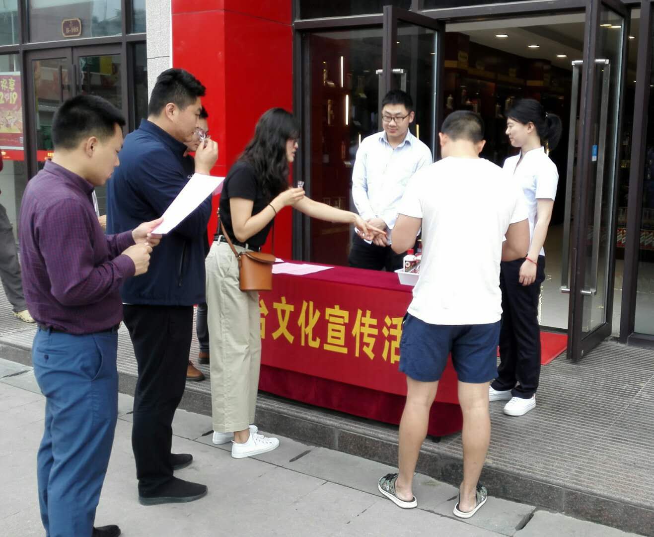 樹立國(guó)企公眾形象,提高社會(huì)美譽(yù)度,我公司于2019年5月16日下午在茅臺(tái)酒專賣店店面外開展“茅臺(tái)文化宣傳活動(dòng)”。